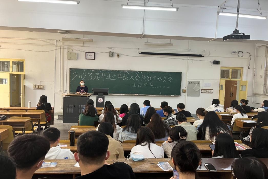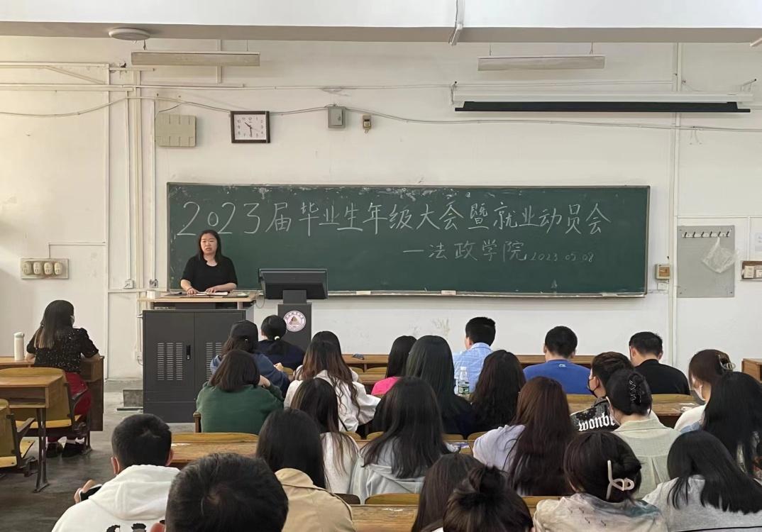 为了进一步学习贯彻习近平总书记关于帮助高校毕业生“顺利毕业、尽早就业”的重要指示精神,高质量做好2023届毕业生离校服务,5月8日上午,法政学院召开“2023届毕业生年级大会暨就业动员会”。法政学院党委副书记朱晓玲、毕业班辅导员张璇及2023届全体毕业生参加会议。