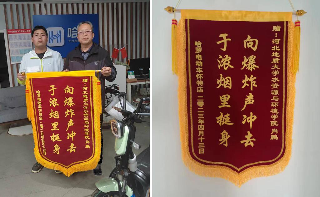 当日下午,肖鹏在等待租车的过程中,看到充电的电池突然发生爆炸,一下炸到了屋顶,并伴随这一声巨响,现场立即充斥着刺鼻的气味。肖鹏听到爆炸声后,第一反应不是逃跑,而是立即前往爆炸地点。据肖鹏同学的描述,现场情况并不明,爆炸所产生的浓烟充斥着现场,火灾有逐渐增大的趋势。紧急情况下,店员拿来了灭火器但不会使用,肖鹏在没有任何防护的情况下,拿起灭火器就冲进了火灾现场并两次进行火灾扑救。在肖鹏同学的坚持勇敢、不畏艰险下成功将火扑灭。成功扑救后,肖鹏离开了火灾现场,由于他在爆炸现场吸入了大量浓烟,感到呼吸不适,到医院检查后,目前身体正在恢复中。事后,同学们问肖鹏当时怕不怕时,肖鹏说:“这次之所以能够不顾自身安危,挺身而出,与学校日常的德育教育有着密不可分的联系。正是因为平日里受到一些英雄事迹的熏陶,才能做到在危机时刻的无畏。同时,学校对学生消防知识的常态化教育,才能使他在遇到火灾时才不会无措。”肖鹏救人救物于水火,不仅为商家挽回了损失更减少了火灾扩大带来的风险。而这其中,身为地大学子的肖鹏更是彰显了他的责任和担当,是所有河地大学子学习的榜样。