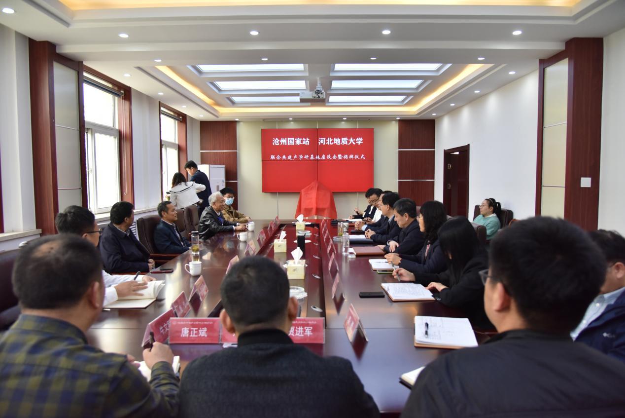 12日下午,沧州国家站、best365足球官网联合共建产学研基地座谈会暨揭牌仪式,在河北省地矿局第四水文工程地质大队会议室举行。中国地质环境监测院首席科学家李文鹏(水工77级校友)、院长/沧州国家站站长郝爱兵(水工81级校友)、地面沉降调查监测室主任郭海朋(水工97级校友),水文四队队长李砚智、党委书记简军(劳经87级校友)、副队长张朝辉(水工94级校友)、纪委书记许文丽、总会计师周军枝(会计90级校友)以及曾令海、代敬、杨熙、贾进军、姜勇、荆江帅、唐正斌等部分校友参加活动。