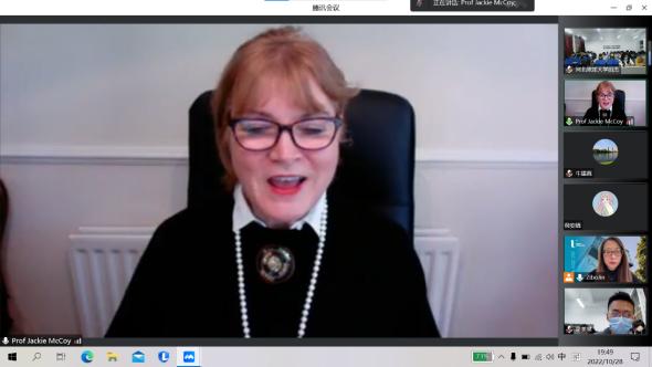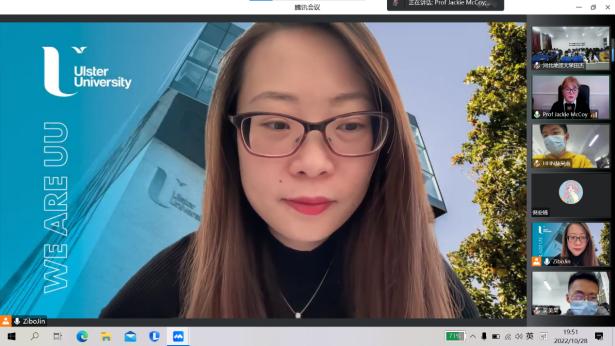 Jackie McCoy通过视频致辞,对同学们通过合作办学项目赴英国厄尔斯特大学学习表示热烈欢迎,同时向2022级新生详细介绍了厄尔斯特大学商学院的基本情况、中外合作办学项目的培养模式、商学院的优势学科以及人才培养情况,介绍了就读本项目对学生将来就业或者继续深造的帮助。英方国际项目负责人金子博博士,结合自身在英国厄尔斯特大学的学习成长经历和工作经验给2022级新生们提出了宝贵的建议,鼓励同学们在大学期间尝试新鲜事物,实现多元化发展,同时希望同学们要对自己的未来做好合理规划。