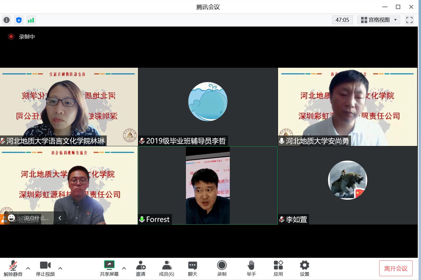 为拓展毕业生就业市场和学生实习岗位,语言文化学院领导班子继续积极开展“访企拓岗促就业”活动。9月2日下午,语言文化学院与深圳彩虹源科技有限公司在线上座谈,对学生实习、就业等方面开展合作进行了商谈。学院党委书记林琳、党委副书记杨旭辉、副院长安尚勇、毕业年级辅导员李哲,彩虹源科技有限公司总经理、best3652005级英语专业校友霍景金参加座谈。杨旭辉主持了座谈会。