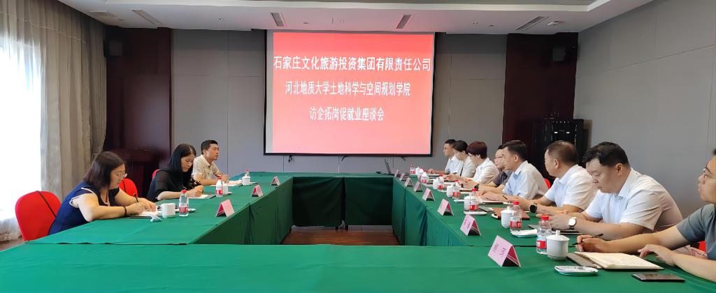 为贯彻落实党中央、国务院、省委和学校关于《访企拓岗促就业专项行动实施方案》精神,全力促进毕业生顺利就业、充分就业、高质量就业,7月15日上午土地科学与空间规划学院党委书记白翠玲、党委副书记李光、城乡规划教研室刘宏娟老师赴石家庄文化旅游投资集团有限责任公司开展“访企拓岗促就业”专项行动。石家庄文化旅游投资集团有限责任公司党委副书记、副董事长、总经理秘勇,党委副书记、董事、工会主席陈刚,党委委员、总法律顾问易灿辉,副董事长、总经理李菁,党委办公室主任王春影,规划发展部副部长鲍珂,滹沱河景区开发有限责任公司党委副书记、副董事长、总经理王雅然,党委办公室尹家昕等出席座谈会。