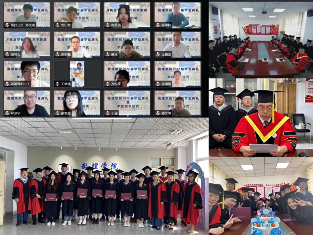 6月16日下午,数理教学部2022届毕业典礼暨学位授予仪式在主楼731会议室举行。best365足球官网副校长赵永强,数理教学部党政领导班子王春恋书记、曹南斌主任、董昌州副书记出席典礼,学部教研室主任、教师代表、辅导员及13名毕业生代表在会议室参加典礼,学部其他教师、全体毕业生及家长线上参加了毕业典礼。