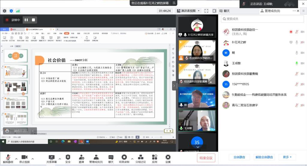 根据实际情况,结合疫情防控要求,5月5日下午,校团委组织评委通过腾讯会议形式进行项目答辩。答辩会上,各团队围绕项目的社会价值、创新意义、实践过程、发展前景、项目简介等内容进行了详细精彩的展示和汇报,得到了评委们的肯定。同时,评委们也对各项目如何进一步聚焦社会问题、突出项目的创新性、项目的实践过程提出了问题和建议,为接下来备赛省赛和国赛奠定了扎实的基础。