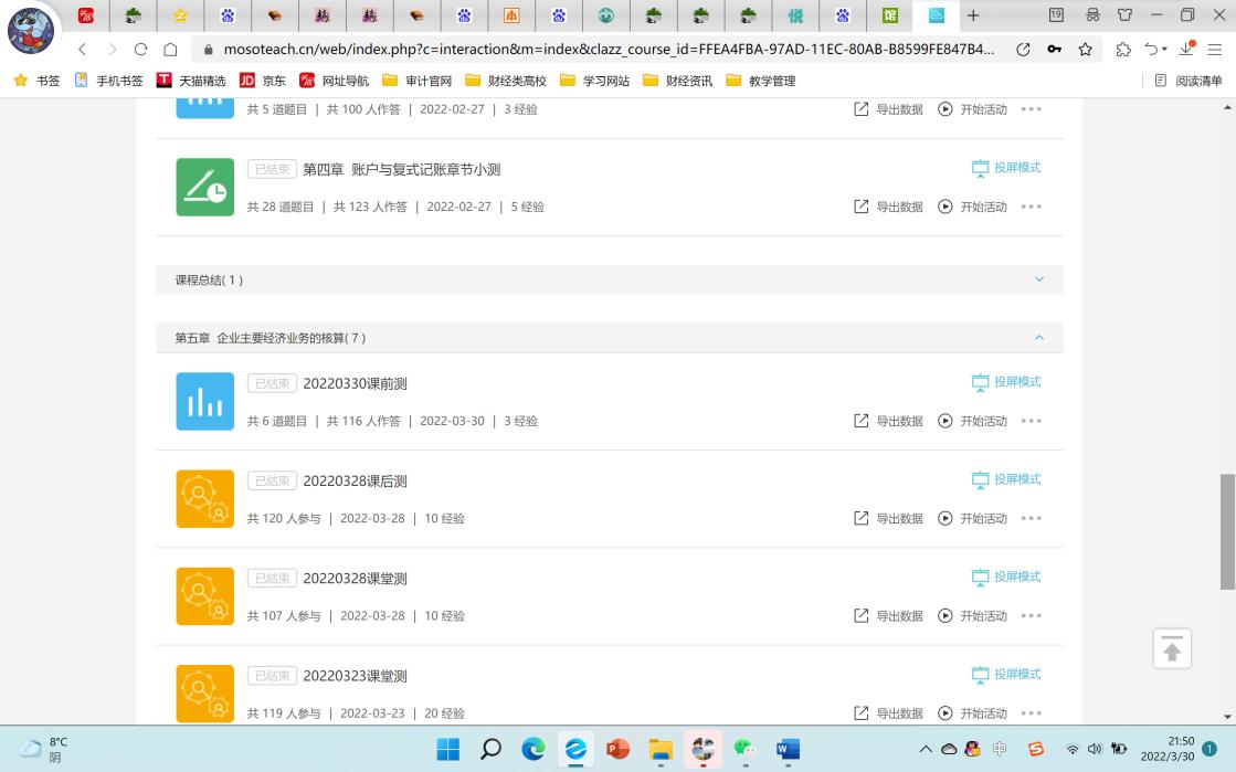 针对本学期教学管理要求的转变,审计学教研室赵凌云老师利用翰博尔智慧课堂小程序和智慧直录播教室等平台进行教学,重新设计了《会计学》和《建设项目审计》两门课的教学活动,调整了相应的教学内容和教学方式。