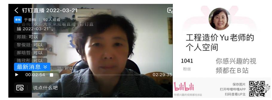 基于学科特点,学院多门课程需结合实际案例工程开展教学,会用到除教材以外的大量资料,为保证教学质量,老师们采用“一主多辅”的线上教学平台,以钉钉直播为主,超星学习通、哔哩哔哩为辅进行教学。