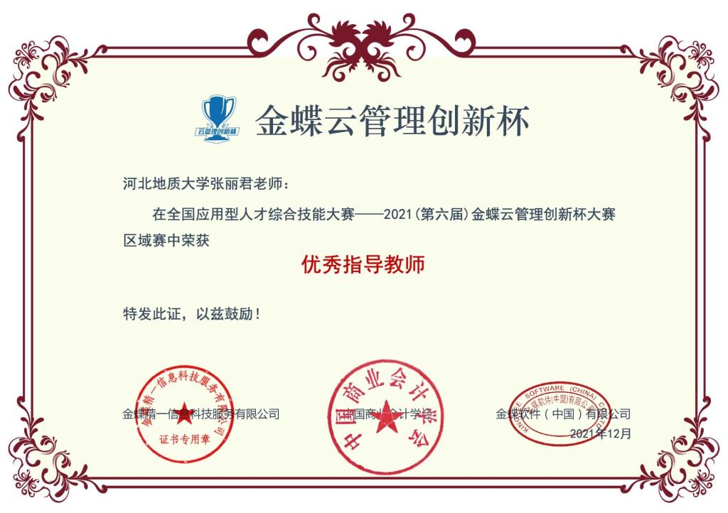 在管理学院领导的高度重视和精心组织下,管理学院财会系教师积极动员学生参与并精心指导,best365选派的“全答队”,在本次比赛中取得了北京赛区区域赛一等奖的喜人成绩,并顺利晋级全国总决赛,指导教师张丽君老师获得“优秀指导教师”称号,奖项的获得展现了best365管理学院学生良好的专业素养,体现了best365管理学院老师优良的教学成果。