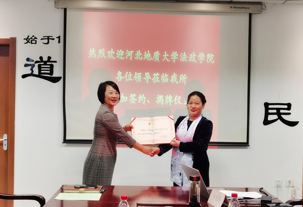 签约仪式上,聘任河北济民律师事务所李雪英、方建东、孙金花、宋云鹏四位律师为法政学院客座教授,侯丽艳院长分别为其颁发聘书。至今,我院已经有20多个实习基地和法学教育共建单位,聘请了20多名法律实务人员担任客座教授。