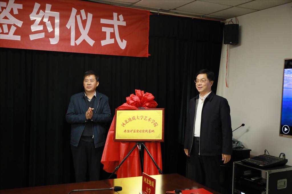 最后,学院传媒系史殿元副院长与井陉矿区组织部部务委员编办副主任吴涛签署了教学实习基地和就业基地协议书,韩毅院长与矿区组织部齐正进部长为教学实习实践基地和就业基地揭牌。