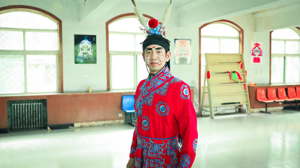 矿区社火是石家庄市井陉矿区独有的民俗文化艺术,分为红脸社火和白脸社火两种表现形式。小分队这次走访了红脸社火俱乐部,因社火为过年期间冬天的表演,暑期小分队在烈日下欣赏了特殊的“红脸社火表演”。小分队成员尤洋同学更是实地体验了表演时的服装造型,老师傅将油彩画在同学脸上,让小分队成员更近的接触到了传统民俗文化。
