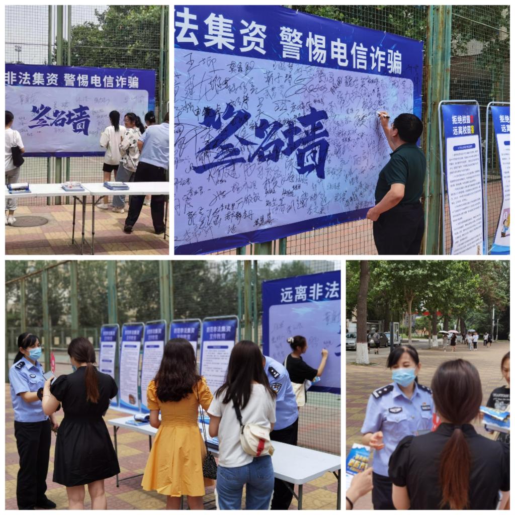 6月15日是防范非法集资集中宣传日,为使宣传活动深入校园,确实起到教育、防范的目的,best365与裕华区东石派出所在校园内联合组织了“远离非法集资,警惕电信诈骗”普法宣传和签名活动。
