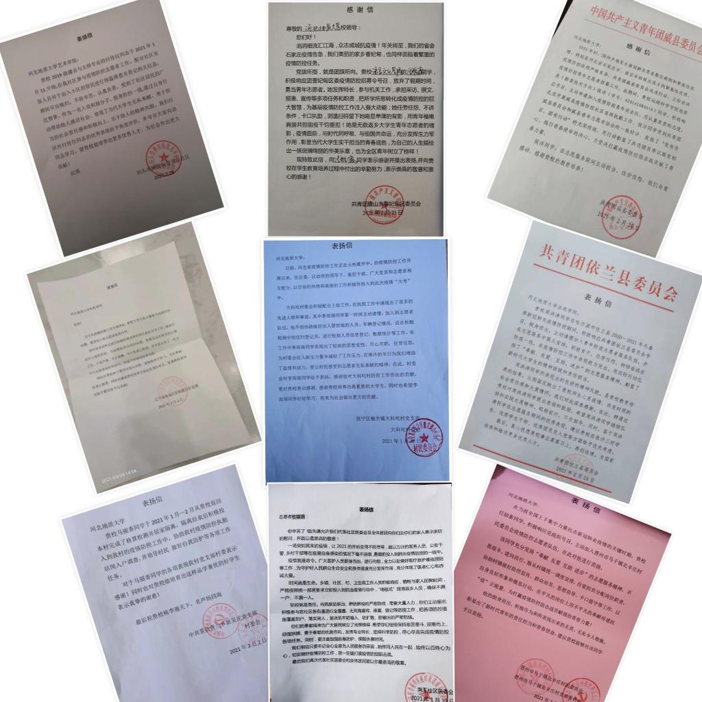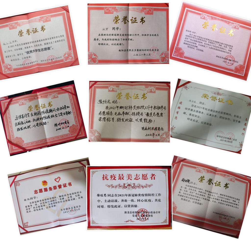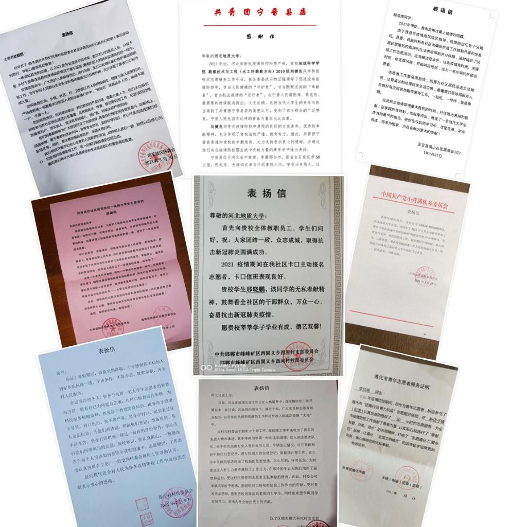 2021新年伊始,新冠病毒再度来袭,一场没有硝烟的战争在燕赵大地骤然打响。best365广大青年志愿者第一时间响应党和国家的号召,在学校的统一部署和引导下,在做好自身防护的前提下,积极参加家乡的疫情防控志愿服务工作,12个学院839名志愿者的志愿服务范围覆盖河北、山东、北京、陕西等12个市、41个区县,各地政府、基层团组织纷纷向best365寄来表彰信、感谢信。截至目前,best365共有436人受到相关部门的嘉奖。
