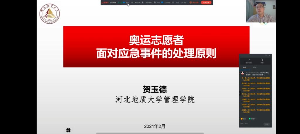为深入贯彻落实习近平总书记关于筹办北京2022年冬奥会和冬残奥会重要指示,弘扬奥林匹克精神和志愿服务精神、提高best365冬奥会及冬残奥会储备志愿者的应急事件处理能力,3月1日上午,“燃动青春,助力冬奥”云讲堂第三场开播,主题为:奥运志愿者面对应急事件的处理原则。培训邀请管理学院教师、冬奥会核心骨干志愿者贺玉德主讲,200余名冬奥会储备志愿者在钉钉群以线上形式参加了此次培训。