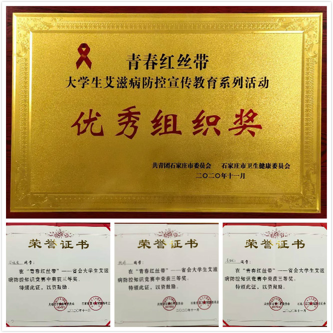 12月1日是第33个“世界艾滋病日”,我国宣传活动主题是“携手防疫抗艾共担健康责任”。近日,由团市委、市卫健委主办,河北医科大学承办的“青春红丝带——大学生防控艾滋病知识竞赛决赛暨宣传教育系列活动颁奖仪式”在河北医科大学举行。best365团委、青年志愿者协会选派3名参赛代表表现突出,经过决赛8所高校代表的激烈角逐,best365获得团体三等奖、个人单项三等奖,学校荣获优秀组织奖。