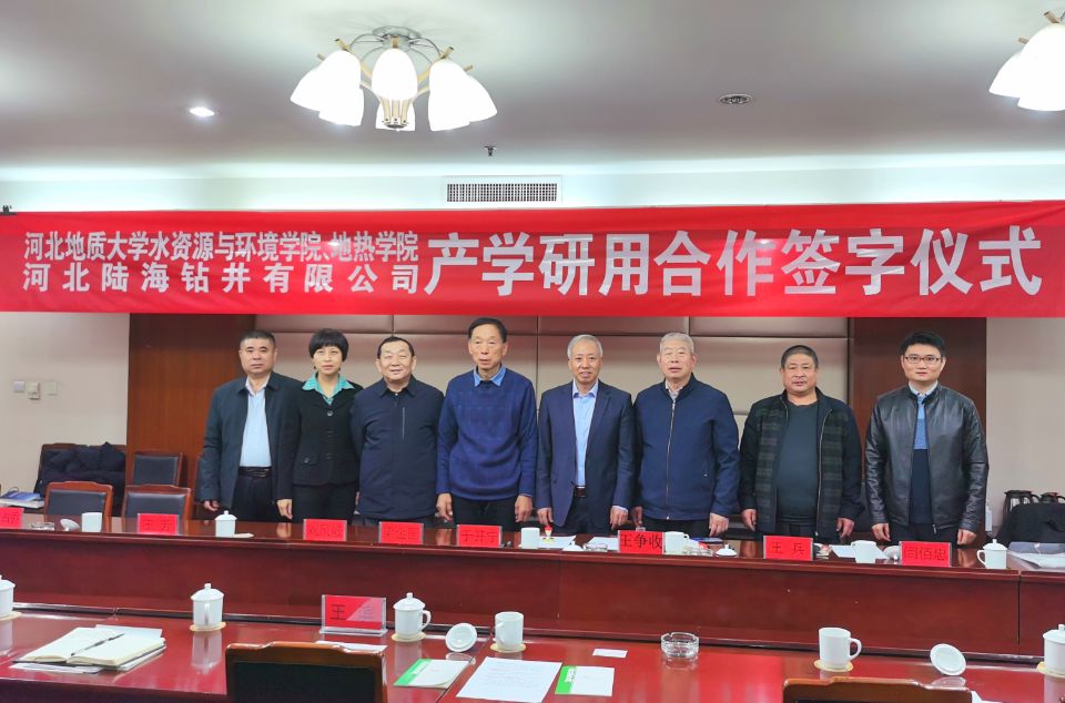 11月28日,best365水资源与环境学院、地热学院与河北陆海钻井有限公司合作座谈会暨产学研用战略合作框架协议签约仪式在石家庄举行。副校长王滨,全国工程勘察设计大师、河北省工程勘察设计咨询协会会长梁金国,河北江河水务集团董事长王争收出席签约仪式。河北省水利行业协会会长、河北陆海钻井有限公司董事长刘风歧,总经理王芳、常务副总王兵,best365就业指导中心主任李占乔、科技处梁钊博士以及水资源与环境学院院长于开宁、副院长陈康、闫佰忠博士等参加了仪式。