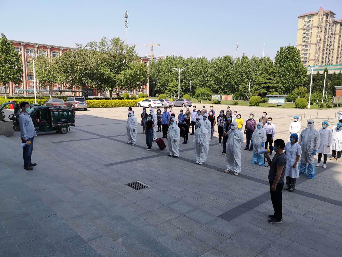 4月30日下午,北校区举办了2020年春季开学新冠肺炎疫情防控模拟演练。从学生返校入学、行李消杀、疑似病例应急处置、发现体温异常应急处置等方面进行演练,做到疫情防控全覆盖,并进一步提高应急处置能力,为全体学生安全复学保驾护航。