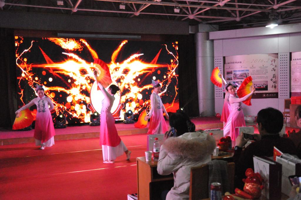 开场舞《中国龙》拉开联欢会帷幕,委婉大气的《梨花颂》、边唱边跳的《本草纲目》、弹唱《狮子座》等让大家感受到MBA学生的多才多艺。除此之外,还有手风琴演奏、三句半、诗朗诵、舞蹈串烧等节目,最后在大合唱《我和我的祖国》中圆满结束。联欢会不但节目精彩纷呈,还有许多游戏和抽奖环节,让大家在互动中增进了感情。优美的歌声、动感的舞姿、炫酷的舞台,让大家沉浸在欢乐的海洋里,笑声、掌声起伏不断,共聚共欢、共话友情,呈现了一场精彩的MBA盛宴。