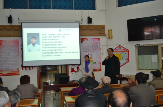 11月6日下午,在老干部活动中心八角厅,后勤集团联合老干部处共同举办了一场别开生面的医学讲座。他们聘请河北医科大学第一附属医院神经内科主任医师田书娟教授,为广大离退休老同志讲授脑血管疾病的临床表现,在日常生活中起居饮食应注意的事项和防治重点等内容。这一活动受到了广大听众的好评,老同志们纷纷表示,在季节更替,冷暖交织的时节,正是脑血管疾病的高发期,后勤集团和老干部处在此时举办这样的活动,反映出集团和处领导心系群众,关爱老同志、细致认真的工作态度。