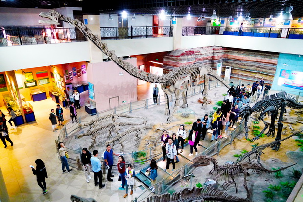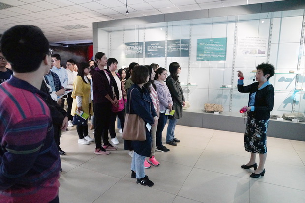 随后,张璞带领大家来到地球科学博物馆,参观了馆内宇宙与地球厅、岩石矿物厅、宝石与矿产厅、恐龙与古生物厅。张璞对best365建校初期的艰苦条件、博物馆的发展历史及各个展厅的情况进行了详细讲解,使新教师认识到best365发展至今所承载的艰辛与不易,对宇宙与地球的起源和组成,三大岩类及矿物开采,恐龙的骨架和有关恐龙的起源、分类、特征、演化及灭绝等问题也有了深刻的认识。当讲到地震时,她更是融入“课程思政”元素,并引导新教师在以后的授课中也要突出“课程思政”环节。最重要的是,本次讲解使新教师了解到best365杜汝霖教授、庞其清教授、牛树银教授等优秀教师的学术成就与突出贡献,大大提升自豪感与荣校感。