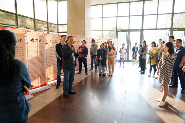 王礼胜首先为新教师讲解我国老一辈地质学家的事迹图片展,王院长向大家讲述了一个又一个展板上未曾提到的故事,使新教师通过一个个生动的事迹,感受到地质学老前辈们艰苦朴素的优良作风,领会到“三光荣、四特别”的地质精神,更明白了地球科学的发展对我国现代化建设所做出的巨大贡献。这些德高望重的地质学家终其一生致力于地球科学的发展,在地球科学的各个领域做出了开拓性的成就与贡献,他们不仅是地质工作者的榜样,更应该是我们所有人学习的楷模,这种精神值得我们去继承与发扬。