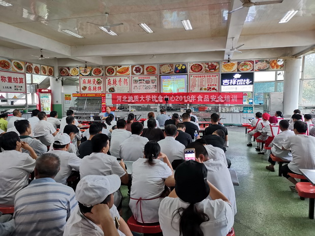 9月11日,后勤集团饮食服务中心在南苑餐厅举办了2019年新学期食品安全培训会。石家庄市市场综合监督执法支队闫云龙主任医师,为大家作了题为“学校食堂食品安全管理”的专题培训。饮食服务中心各餐厅经理、各档口负责人及服务人员、中快餐厅管理及服务人员共计100余人参加了培训。后勤集团总经理易铁山出席培训会,饮食服务中心马建良主持会议。