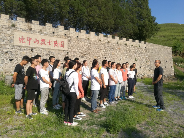面对亮甲山英雄纪念碑,面对这些为了新中国成立付出了自己生命的无名英雄们,全体人员肃然起敬,并绕纪念碑环行一周,寄托对烈士的哀思。随后,党员同志重温了入党誓词,表达了对共产党的忠诚,对烈士的敬仰。