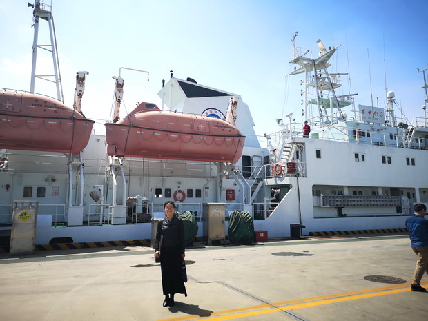 许立青老师和刘伟老师观摩“东方红2号”海洋科考船