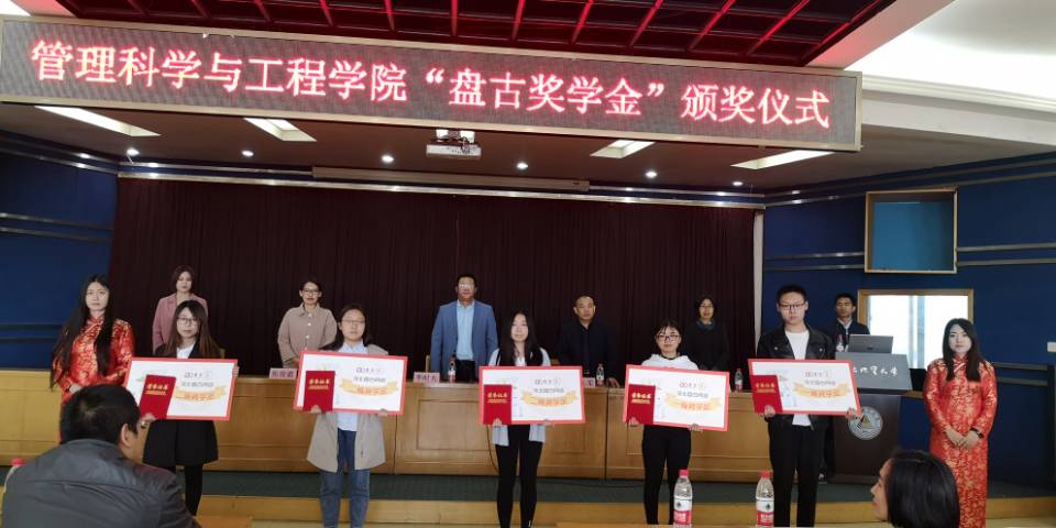 本次“盘古奖学金”的颁发不仅是盘古集团与学院对同学们的殷切鼓励和无限希冀,更是校企合作的一项有力举措。管理科学与工程学院将通过开展形式多样的校企合作模式,为学生提供广阔的就业渠道和施展才能的舞台。