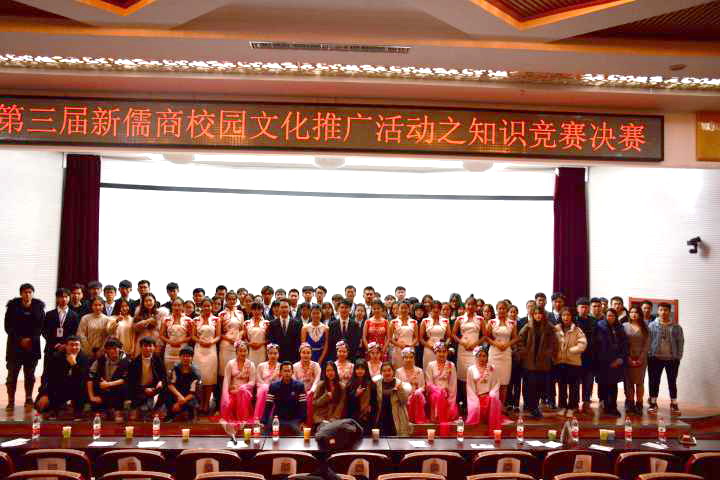 为使新儒商精神在高校学子的思想道德教育和校园文化建设发挥更大的作用,12月13日下午,由商学院主办、商学院团委学生会承办的第三届“新儒商”校园文化推广活动之知识竞赛决赛在校本部春秋讲堂隆重举办。副校长侯书文,商学院院长苗泽华,关工委副书记兼副秘书长李建新,石家庄三策网络科技有限公司总经理林德生,商学院党委副书记董莉,副院长王汉新,代团委书记张建兰,工商管理教研室主任王俊岭,人力资源教研室主任陈伟娜,旅游管理教研室主任张启以及商学院各教研室老师,2015级辅导员徐晓红,各参赛学院团委学生会主席团成员出席决赛现场。