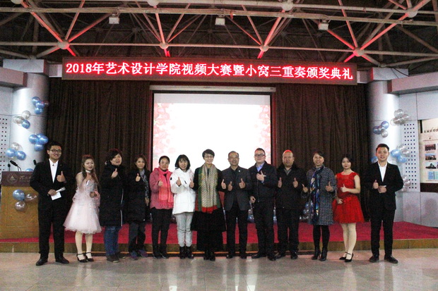 12月7日晚,艺术设计学院在科技报告厅举办了视频大赛暨“小窝三重奏”宿舍评比颁奖典礼。后勤集团总经理易铁山、艺术设计学院党总支书记许晓辉和后勤集团办公室主任宋东、公寓副主任崔磊光、公寓办公室老师殷彩旭、宿舍管理员张淑伟、胡丽艳、辅导员李蕊、范莹莹参加活动。