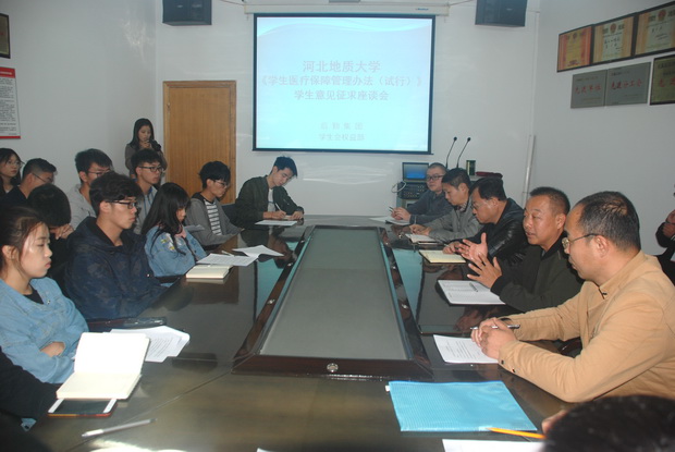 八位学生代表分别发言,对新修订的《best365足球官网学生医疗保障管理方法(试行)》提出建议,并就异地就医、急诊就医、转诊就医程序流程、医疗费报销等问题同与会领导相互交流。校医院杜利勇、徐红格对同学们提出的问题一一解答。