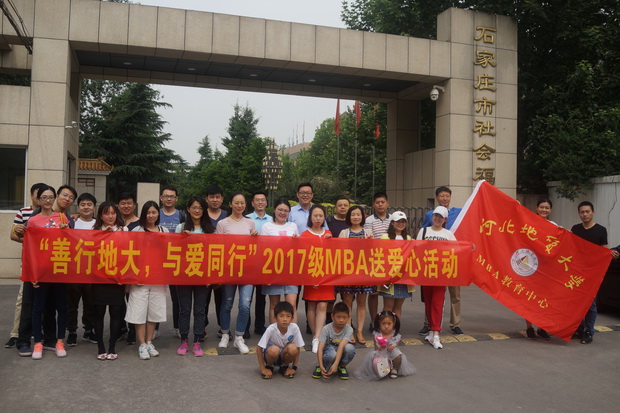 6月2日上午,MBA教育中心邓思远老师带领2017级学员来到石家庄市社会福利院,探访慰问了20余名不同年龄段的孩子,并捐赠了募集物资。