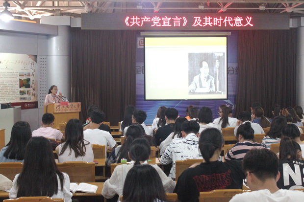 为纪念马克思诞辰200周年,《共产党宣言》正式发表170周年,5月24下午,河北省委党校哲学社会教研部张丽丽老师受邀作了题为“《共产党宣言》及其时代意义”的讲座。校团委老师及best365足球官网第四期“弘毅”团干部读书班200名学员共同聆听讲座。