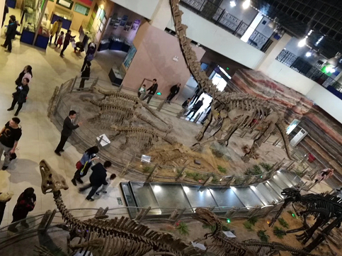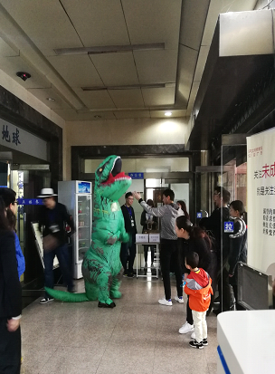 地球日全天博物馆免费开放,并安排20名讲解员宣传节约资源和保护环境理念,以增强广大民众的环保意识和节约意识,全面落实科学发展观。“博物馆寻宝活动”反响尤为热烈,无论大人还是儿童均手持“寻宝卡”在博物馆内寻找宝物、探寻地球奥秘,在寓教于乐中学习了地球知识。“废旧电池回收活动”充分体现了活动日主题,并以此为契机将节约资源和保护环境的理念渗透到日常的生活中去。“青少年绘画比赛”活动共收到绘画作品百余幅。博物馆为30名小朋友颁发了优胜奖奖品——科普图书《浩瀚时空博览》。此外“大型霸王龙人偶表演”吸引了大批儿童前来参与互动。活动当天,前来参观的游客均获得博物馆的纪念水杯。