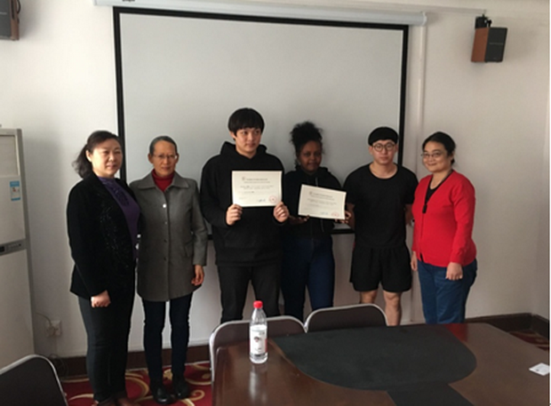 最后,孙广丽为结业的留学生颁发了结业证书,留学生纷纷与老师们合影留念。