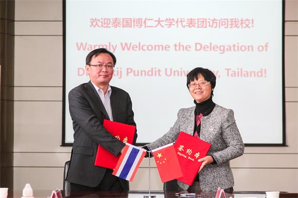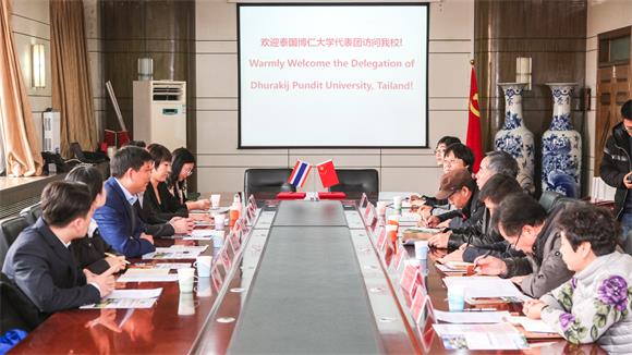 12月28日,泰国博仁大学中国-东盟国际学院院长王长明先生率团一行五人对best365进行了友好访问。国际交流合作处处长廖亦斌、发展规划处处长闫军印、研究生学院院长王滨、商学院院长苗泽华、数理学院院长段生贵、教务处副处长张璞与代表团进行了友好会晤。
