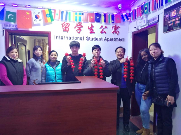 “每逢佳节倍思亲”!新年的气息伴随着冬日里的阳光,在不知不觉中走来。新年将至,后勤集团易铁山总经理于12月27日下午来到留学生公寓,代表集团全体职工慰问外国留学生,向同学们表达后勤的亲切关怀和新年祝福。