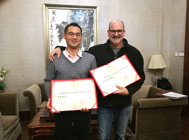 受王凤鸣校长的委托,12月7日晚,毛磊副校长专程赶往北京,在前门建国饭店为best365古生物学科新聘的三位客座教授颁发了聘书。这三位客座教授分别是美国洛杉矶自然历史博物馆副馆长、国际著名的古脊椎动物专家路易斯(Luis M. Chiappe)博士,著名古人类学专家、中科院脊椎动物演化与人类起源重点实验室副主任倪喜军博士,中国地质学会古生物学传播专家、地科院地质所副研究员王旭日博士。古生物学科首席科学家、best365季强教授,科技处长刘云,古生物研究院长吴文盛,北京自然博物馆长孟庆军随同出席。
