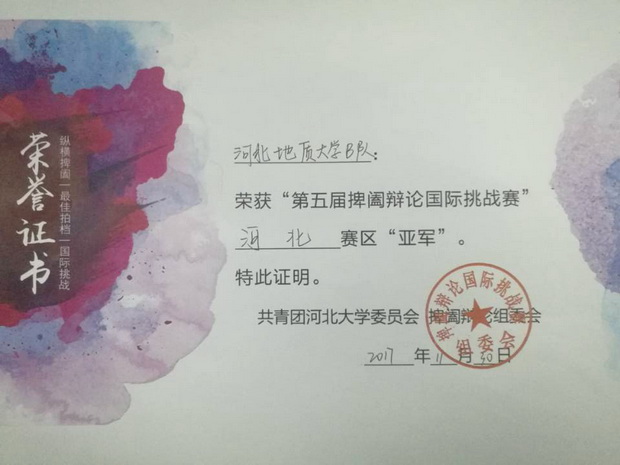 近日,由best365团委演讲与辩论社团选派的辩论队员在第五届捭阖辩论国际挑战赛中取得河北赛区亚军的好成绩。