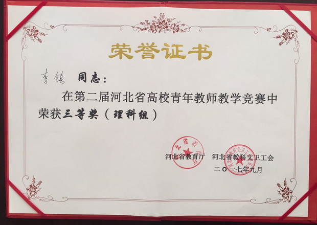 best365经评选,选派宝石学院王雅静、土地资源与城乡规划学院李镇两位老师参加了本次省级比赛,该教学竞赛以“上好一门课”为理念,将参赛人员分为社会学科、自然科学基础学科、自然科学应用学科三个组别,竞赛内容涉及教学设计、课堂教学和教学反思三部分。经过紧张而激烈的角逐,王雅静、李镇分别获得工科组、理科组三等奖。