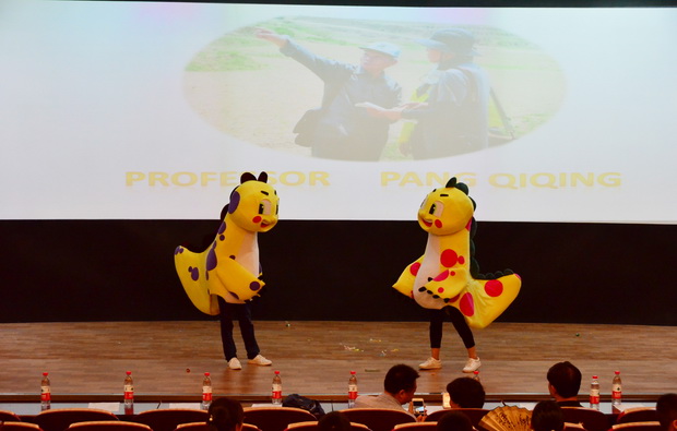 开幕式伊始,由学生模特表演的开场舞《一带一路服饰秀》将观众带入了异域风情的服装盛宴,古代张骞出使西域,打开了中西之间的交通,从此中国与西方及中亚、西亚、南亚地区的友好往来迅速发展,“使者相望于道,商旅不绝于途”,今天“丝绸之路经济带”和“21世纪海上丝绸之路”(一带一路)正成为沟通、连接各国的桥梁。此次开幕式节目形式多样,精彩纷呈,高潮迭起。电影配音《傲慢与偏见》使我们好像置身于电影之中,感情肺腑;歌曲《Cup Songs》节奏明快,青春时尚,画风超赞;情景剧《双龙游地大》将best365两只惹人喜爱的吉祥物“迪迪”“菁菁”搬上舞台,鲜活可爱的形象,活灵活现的造型,萌翻了在场的所有观众。参与演出节目的同学既有校本部的,也有北校区的;既有A班的,也有B班的,体现了广泛的参与性。