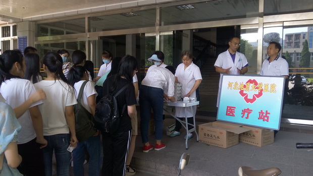 发放现场,校医院院长杜利勇告知学生,进入酷热夏季,同学们要做好防暑降温,平时要多补充水分,备用一些防暑降温的药品,外出避免久留。杜利勇表示继本次活动以后,校医院下一步将针对季节变化及天气特点,为学生发放一些防雾霾口罩和预防流感的药品,切实为学生着想,送温暖、干实事。