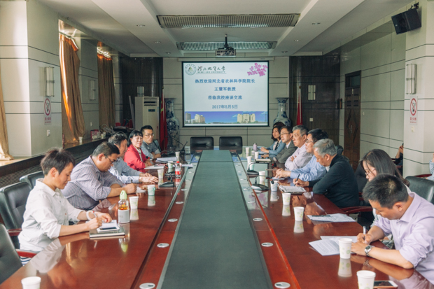 5月5日下午,在主楼四层会议室,河北省农林科学院院长王慧军、科技处处长郑小六应邀到best365,就双方的项目对接与合作进行了交流座谈。校长王凤鸣、副校长毛磊、经济研究所所长王殿茹、经贸学院党委书记牛建高、科技处副处长于开宁、水资源与环境学院副院长李铎等50多名师生出席了此次交流会,王殿茹主持会议。