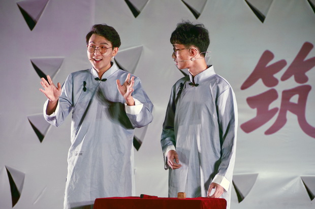 在主持人热情洋溢的开场白中,展演拉开序幕。首先是健美操团带来的《博彩青春》,处处透着蓬勃的活力,台上台下氛围高涨;民舞团精彩的舞蹈表演《梦飞扬》,曼妙的舞姿与动人的音乐相得益彰,表现出青年们为祖国而奋斗,为理想而上进的风采。第二篇章中,桑尼舞蹈团带来的《梦醉黄河》,独具创意地将陕北民歌与拉丁舞相融合,粗犷中不失细腻,展现了别具一格的舞蹈魅力。土地资源与城乡规划学院带来的《相约未来》,用舞蹈的形式表现出他们努力学好专业知识,立志为祖国做贡献的信念。经贸学院和模特团带来的《军中豪情》刚柔并济,独特的方式展现出豪情壮志。第三篇章中艺术设计学院表演的舞蹈《我的祖国》,表现出青年们坚守祖国的信念;阳光合唱团带来的《中国梦 你我的梦》,用有力的节奏,完美唱响了心中理想。影视学院的《蚂蚁》用新颖的朗诵的形式,展现出当代青年负重前行却不忘梦想,赢得在场观众共鸣。整场晚会精彩纷呈,其中商学院题材新颖的舞蹈《茉莉花》让人印象深刻、外国语学院用英语、法语、中文倾情合唱的《心中有梦》、尤博主持团带来的逗趣相声《我要穿越》和天籁器乐团带来的《长城之征》等节目也为增添了更多亮点。