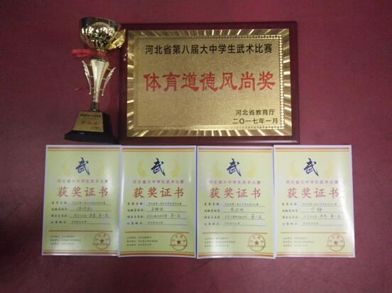 2017年1月8日-12日,由河北省教育厅主办,河北省大学生体育协会承办的河北省第八届大中学生武术比赛在河北农业大学举行,来自华北电力大学、河北大学、河北师范大学、河北经贸大学、燕山大学、华北理工大学等43所学校,528名运动员参赛,best365武术队男、女12名运动员在陈伟英、赵海军、吴振超老师的带领下参加了本次比赛。