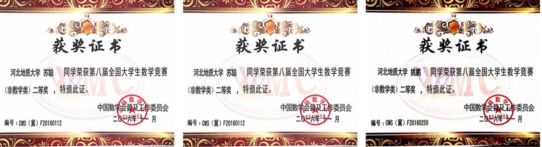 另通知:请全国大学生数学竞赛及河北省大学生数学竞赛获奖同学到数理学院教学办(主楼727)领取获奖证书。