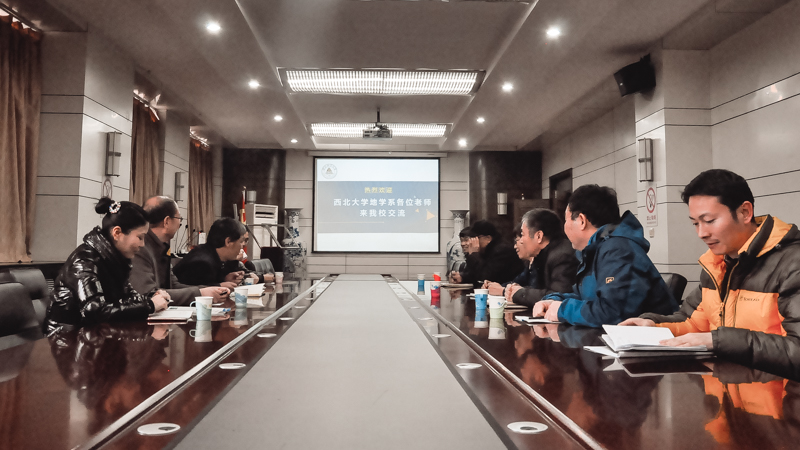 之后双方在友好的气氛中开展了交流活动。参加本次交流的双方成员有:西北大学地质学系党委书记喻明新,党委副书记李青彦,副主任陈丹玲、孙二丽,水文地质学科带头人、best365校友康卫东教授;best365水资源与环境学院院长许广明、原院长杨小荟,资源学院副院长王立峰、勘查技术与工程学院副院长袁颖等地学类学院负责人以及陈康、曹静杰、杜江民、陈雪等青年教师。王立峰主持交流活动。