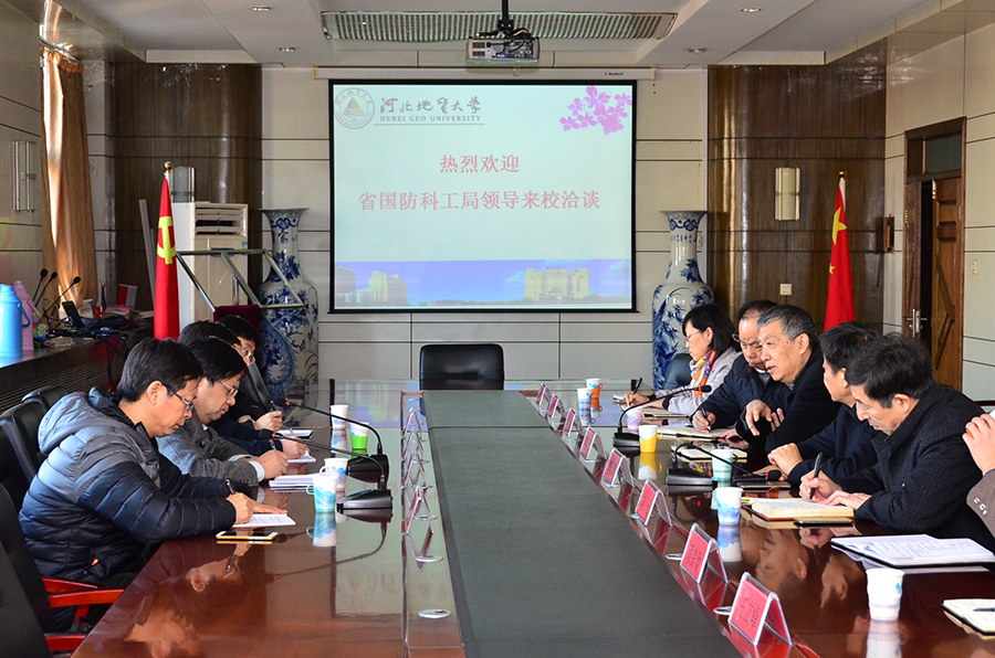 2016年12月22日上午,河北省国防科工局局长徐振川率该局军民结合推进处副处长封永存、系统规划科技处副处长柳萌、综合处副主任科员薛龙来best365洽谈军民融合、军地军校对接、整合资源,合作发展的相关对接工作。洽谈会在主楼四楼会议室举行。党委书记李军、副校长毛磊、科技处处长刘云、教务处副处长刘翠娥、光电信息研究所所长亢俊健、资源学院副院长王立峰、勘查技术与工程学院副院长袁颖、网络信息安全实验室主任硕良勋等参加了座谈会。