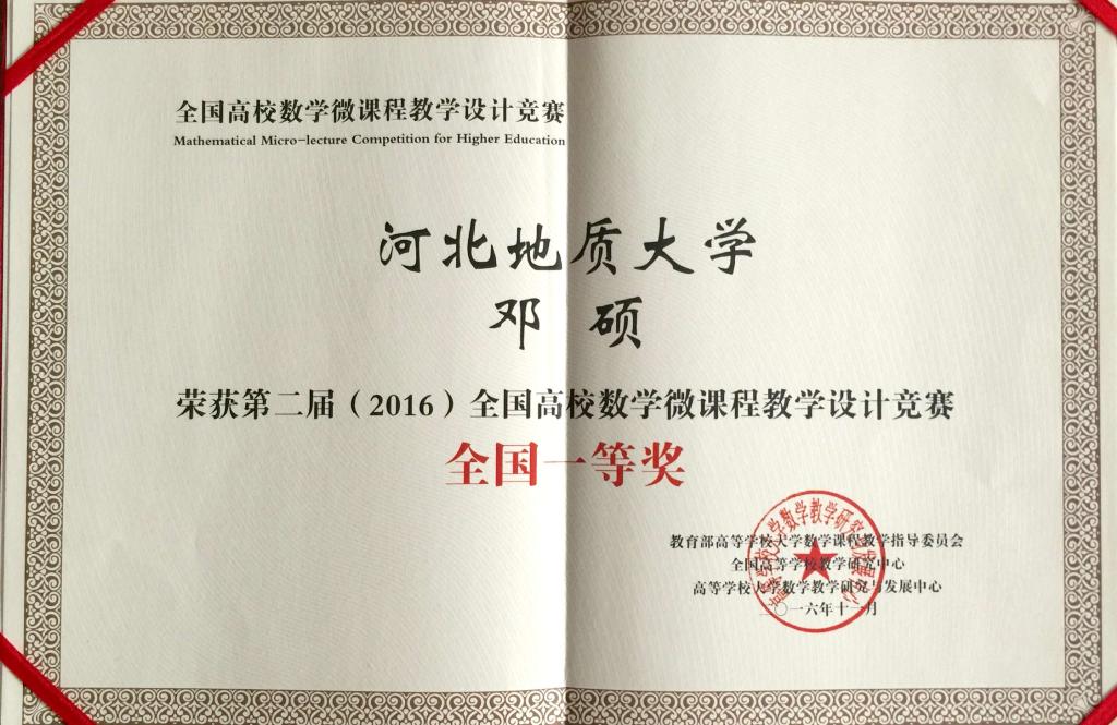 数理学院高度重视本次竞赛,把此次竞赛当成了展示best365数学教师风采的一个舞台,在教务处、创新创业教育学院、现代教育中心的大力支持下,共制作推荐出4件作品参加此次竞赛,其中邓硕老师获得华北赛区特等奖,王薇老师和张立静老师获得华北赛区一等奖,路玲霞老师获得华北赛区二等奖,河北省只有两所高校获得华北赛区特等奖。为在全国会评中取得优异成绩,数理学院专门成立辅导小组,利用暑假时间对邓硕老师的授课环节进行精心雕琢,最终在比赛中展示了best365足球官网教师良好的教学水平和扎实的教学基本功。