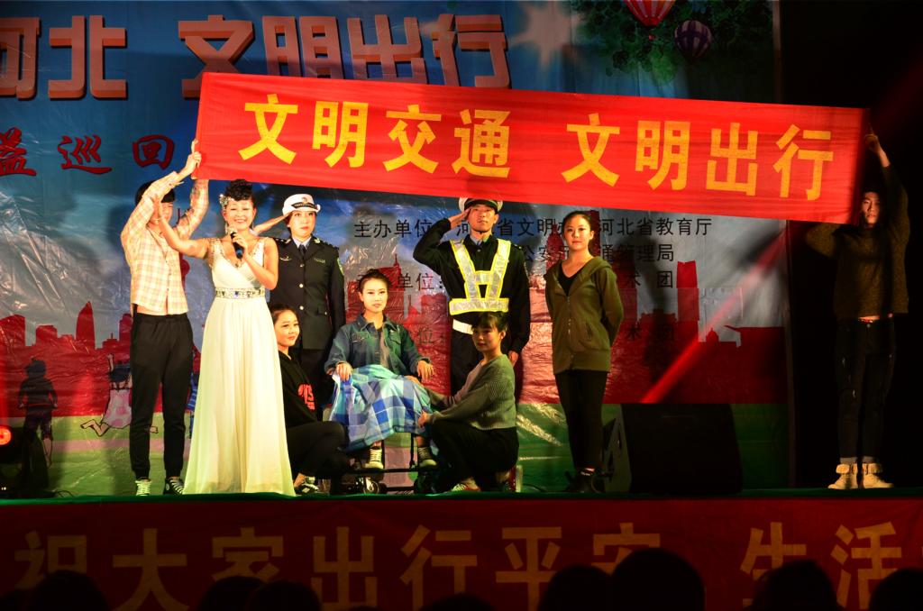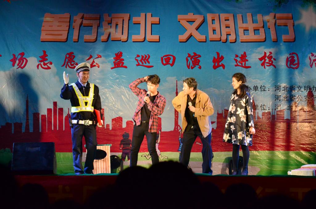 10月19日晚,由省文明办、省教育厅、省公安交管局主办,河北省交警艺术团承办的“善行河北,文明出行”志愿公益巡回演出活动在best365北校区举行。河北省交警艺术团围绕宣传交通安全知识、交通法规为主题,以学生喜闻乐见的形式,通过歌曲、小品、相声等艺术形式,向学生们开展交通安全宣传教育。北校区学生观看了演出。